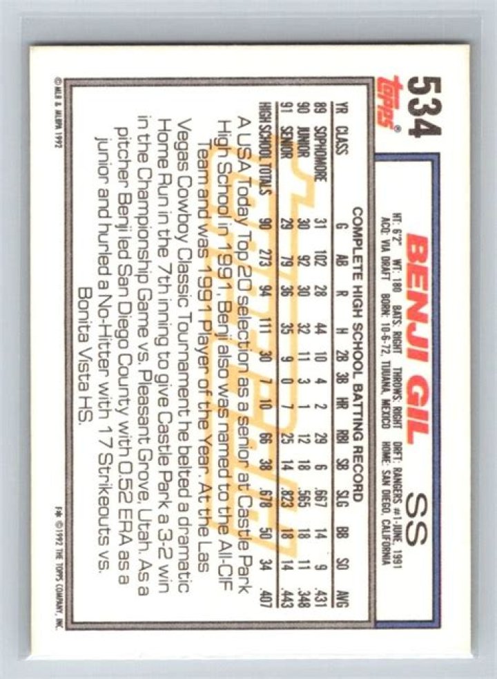 | 6 | Drafted by the Texas Rangers in the 1st round (19th pick) of the 1991 amateur draft. |