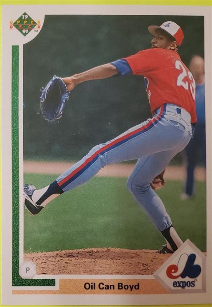 Dennis Ray "Oil Can" Boyd (born October 6, 1959) is a former starting pitcher in Major League Baseball. Boyd played for the Boston Red Sox (1982–89), Montreal Expos (1990–91), and Texas Rangers (1991). He batted and threw right-handed.His nickname comes from his beer-drinking days in his hometown of Meridian, Mississippi, where beer is referred to as "oil." Boyd had one of the more colorful personalities of his generation and a quotable outlook that made him memorable long after his career ended.