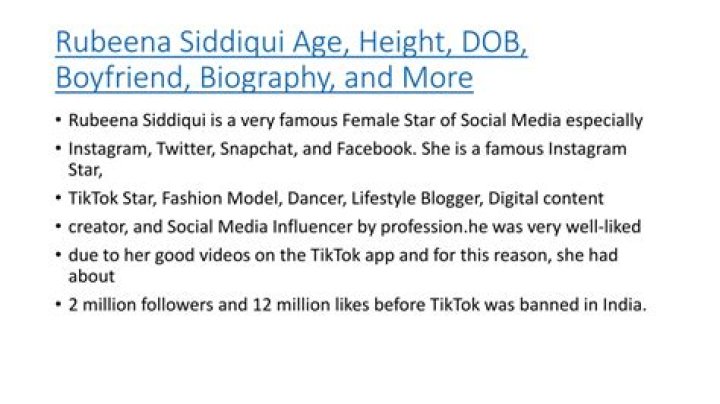 TikTok Life of Rubeena Siddiqui : Rubeena Siddiqui was exceptionally renowned on TikTok. She has north of 1 Million Devotees and more than 10 Million Preferences on her TikTok recordings back then.